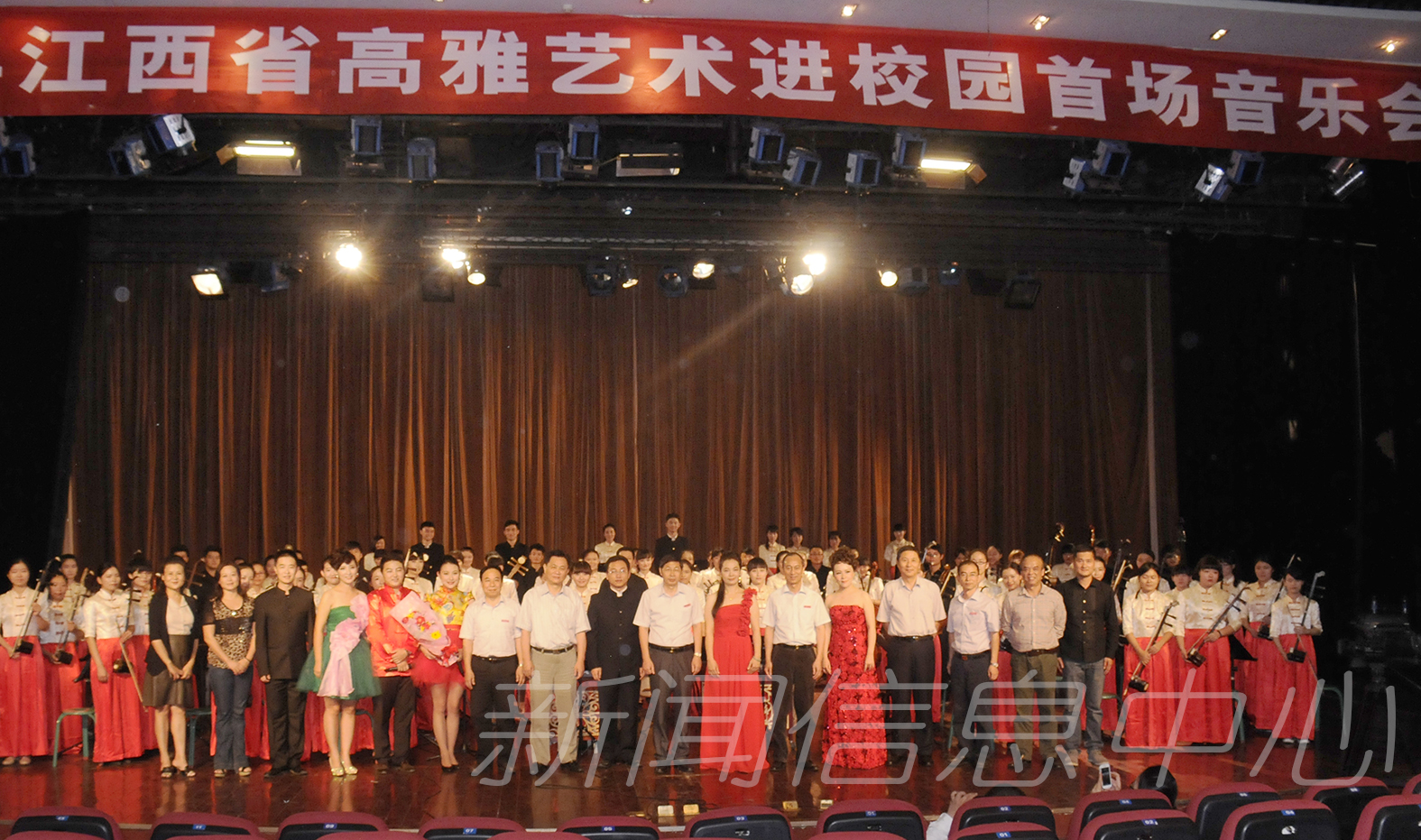 10月10日晚,由江西省教育厅主办、我校音乐学院民族管弦乐团承办的“高雅艺术进校园”首场演出在我校先骕楼实验剧场举行。校党委书记田延光,副校长聂剑,纪委书记周晓朗,校长助理熊永华、丁晖等观看了演出。相关职能部门及音乐学院负责人、学校师生代表共500余人一同感受了一场丰盛的音乐和文化盛宴。