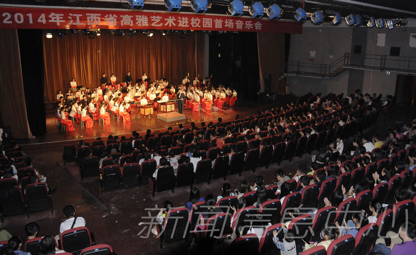 据悉,我校音乐学院多次承担江西省高雅艺术进校园活动的创编、演出任务,每每都获得上级领导和观看群众的充分肯定与广泛好评。我校音乐学院民族管弦乐团此次演出,为2014年度江西省高雅艺术进校园活动的首场演出,此后,他们将陆续奔赴全省多地进行巡回演出。(文/尤晓萌 李婷 图 /揭荣)