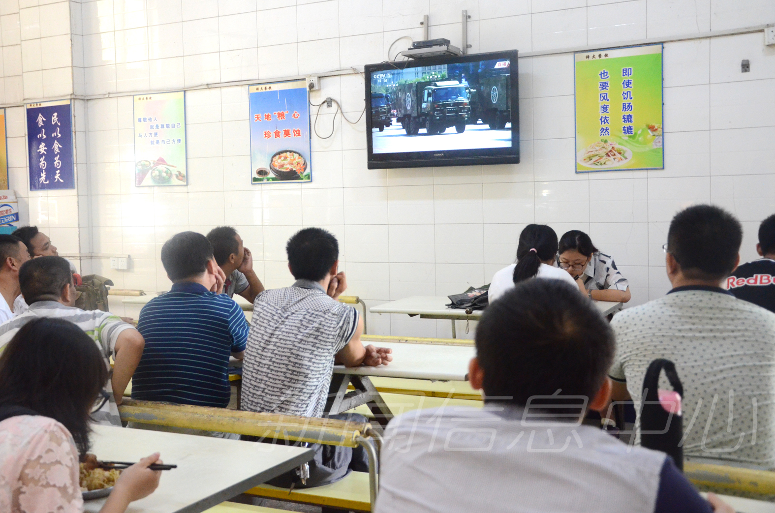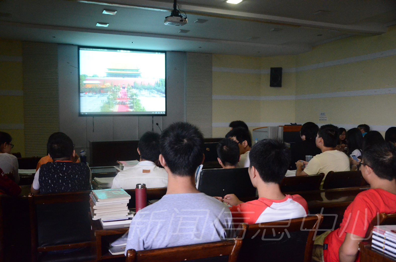 上午,学校学生宿舍电视全面开放,现场直播纪念抗战胜利70周年阅兵盛况。名达楼、惟义楼相关教室坐满了前来观看阅兵的师生,当国旗升起,同学们纷纷起立齐唱国歌,聚精会神地观看阅兵仪式的每一个细节,不时地响起阵阵鼓掌声;学生宿舍内,返校的学生与同学拥坐在电视或电脑前观看阅兵直播;在各学院、各机关行政部门、教学楼大屏幕前、学生食堂、广大教职工家中,我校师生通过收看电视直播的方式亲身感受这光荣而伟大的时刻。