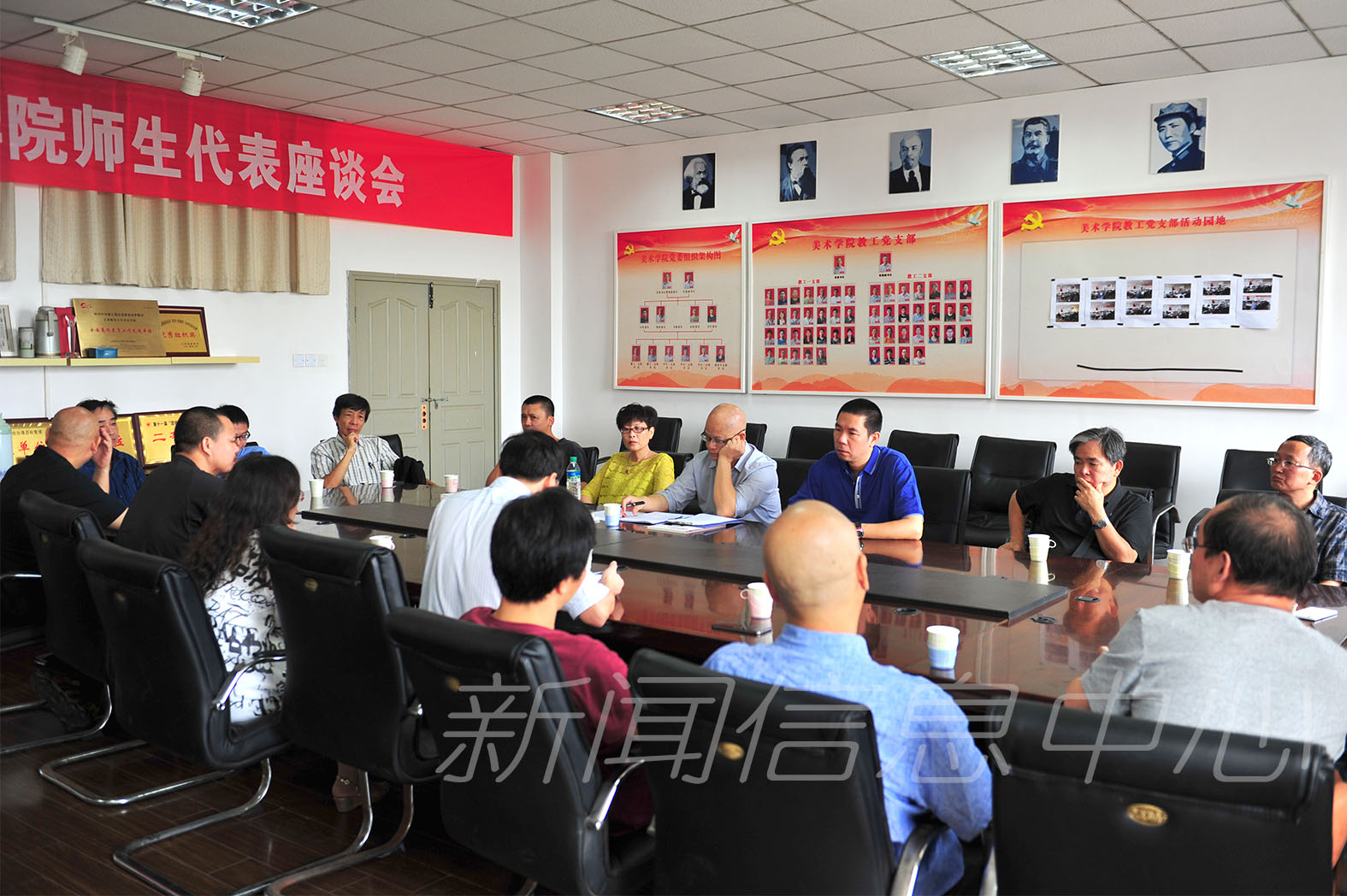 授聘仪式前,邱振中与美术学院班子成员及部分师生进行了座谈交流。受聘后,邱振中参加了美术学院2015级新生开学典礼,并为2015级新生上了大学第一课——《我能为你做些什么》。