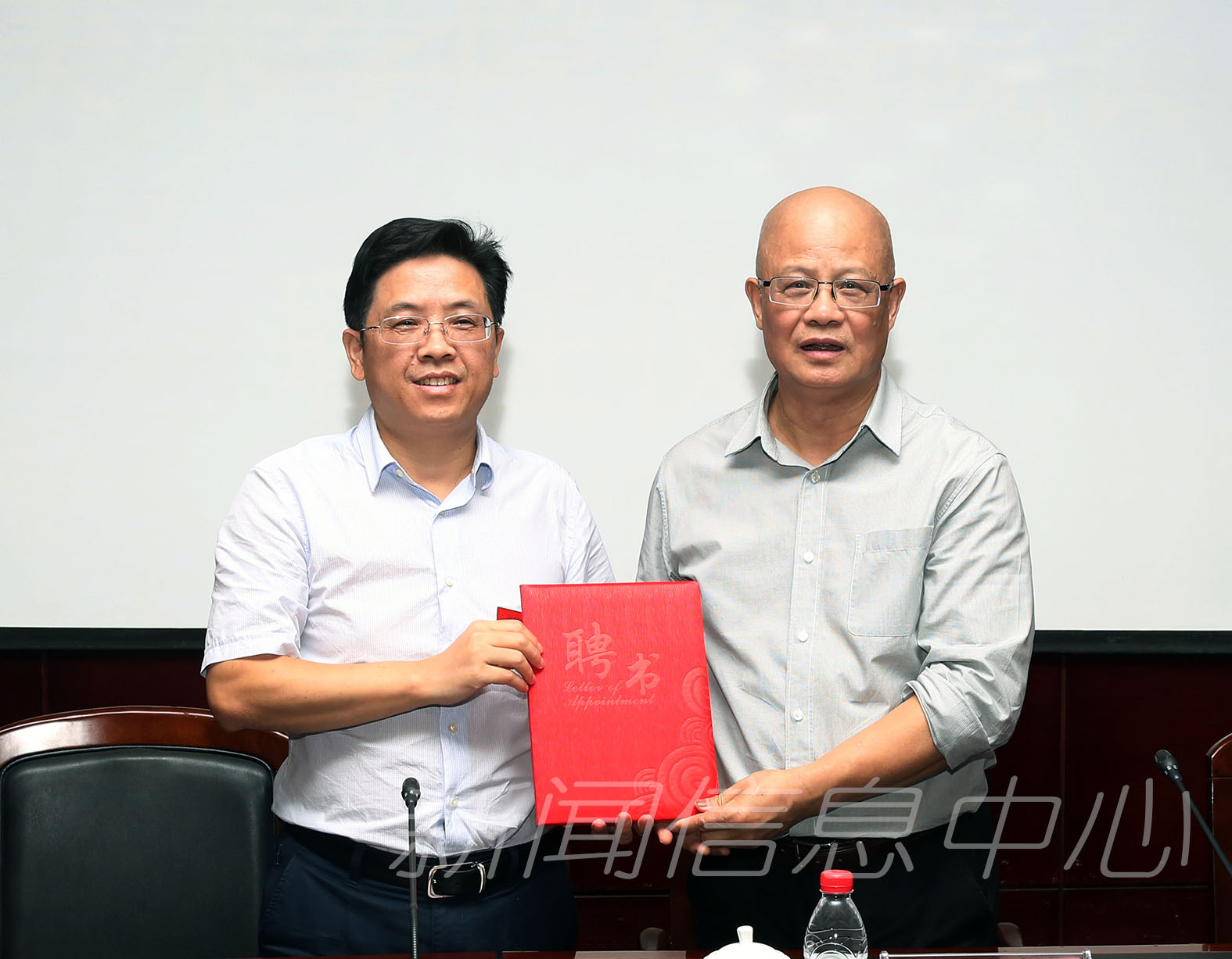 9月16日下午,学校在知行楼第二报告厅举行美术学院名誉院长聘任仪式。当代著名艺术家、书法家、诗人、艺术理论家,中央美术学院博士生导师邱振中教授受聘为我校美术学院名誉院长。省委接待办副主任梅毅,省旅游集团副总经理熊锋,省美术家协会名誉主席蔡超、主席杨金星、专职副主席李晖,学校原党委书记、校长傅修延等应邀出席,校党委书记田延光、校长梅国平及学校相关部门负责人和美术学院部分师生代表参加。授聘仪式由副校长赵明主持。