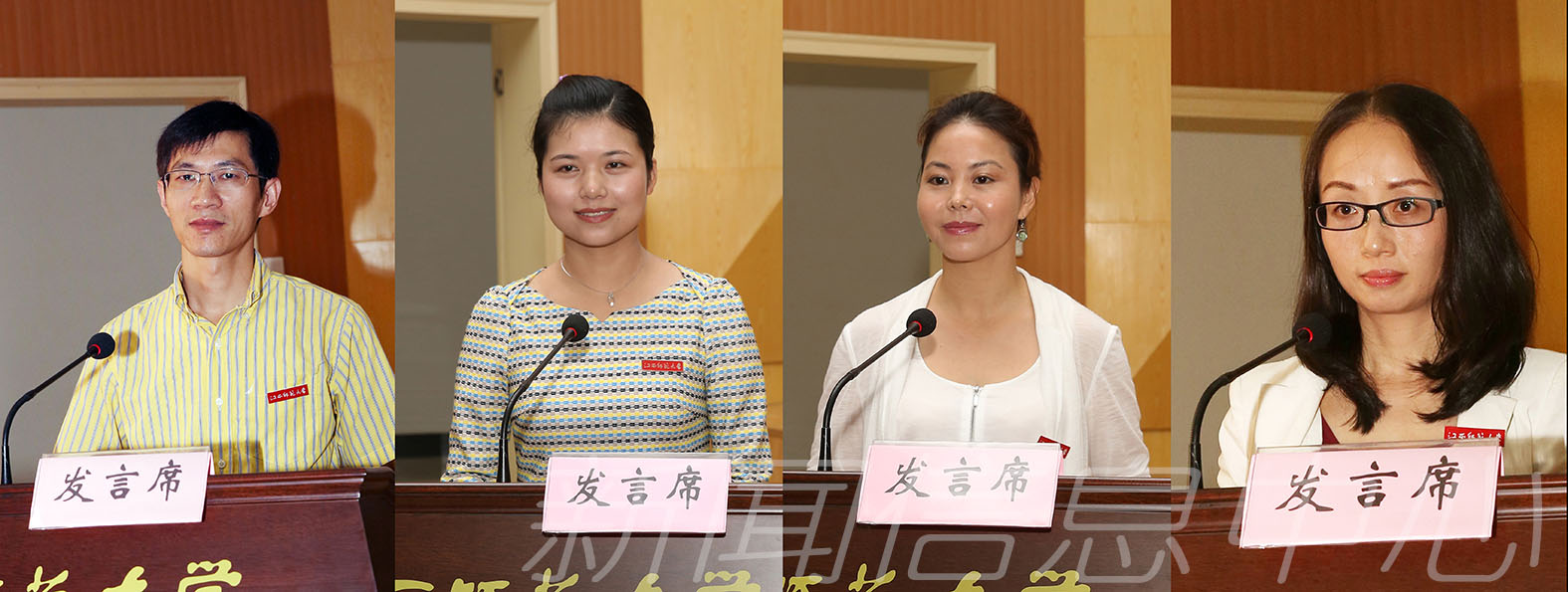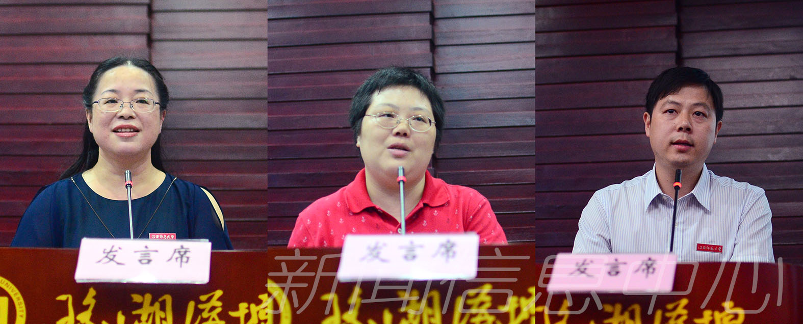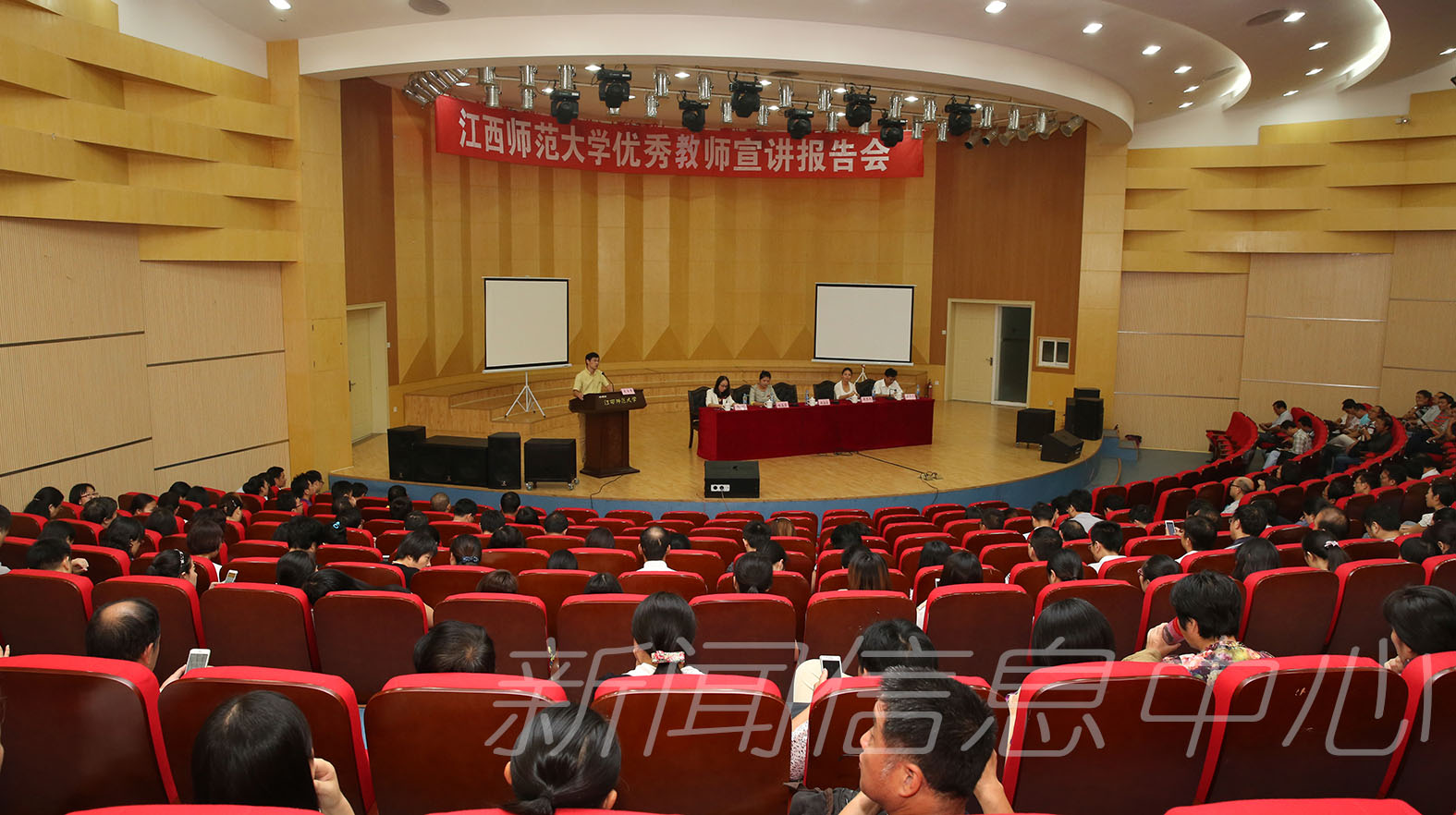 9月22日下午,学校2015年优秀教师巡回宣讲团在瑶湖音乐艺术广场音乐厅和图书馆第三报告厅作了首场宣讲。外国语学院李玉英、文学院陈志华、数学与信息科学学院桂国祥、计算机信息工程学院揭安全、物理与通信电子学院程晏蓓、传播学院黄清华、音乐学院郝珺等7位宣讲团成员结合教书育人中的实例,分享了自己的感悟和工作中的经验做法,赢得了现场听众阵阵掌声。教育学院、心理学院、文学院、历史文化与旅游学院、政法学院、外国语学院、数学与信息科学学院、国际教育学院全体教师聆听了首场宣讲报告。