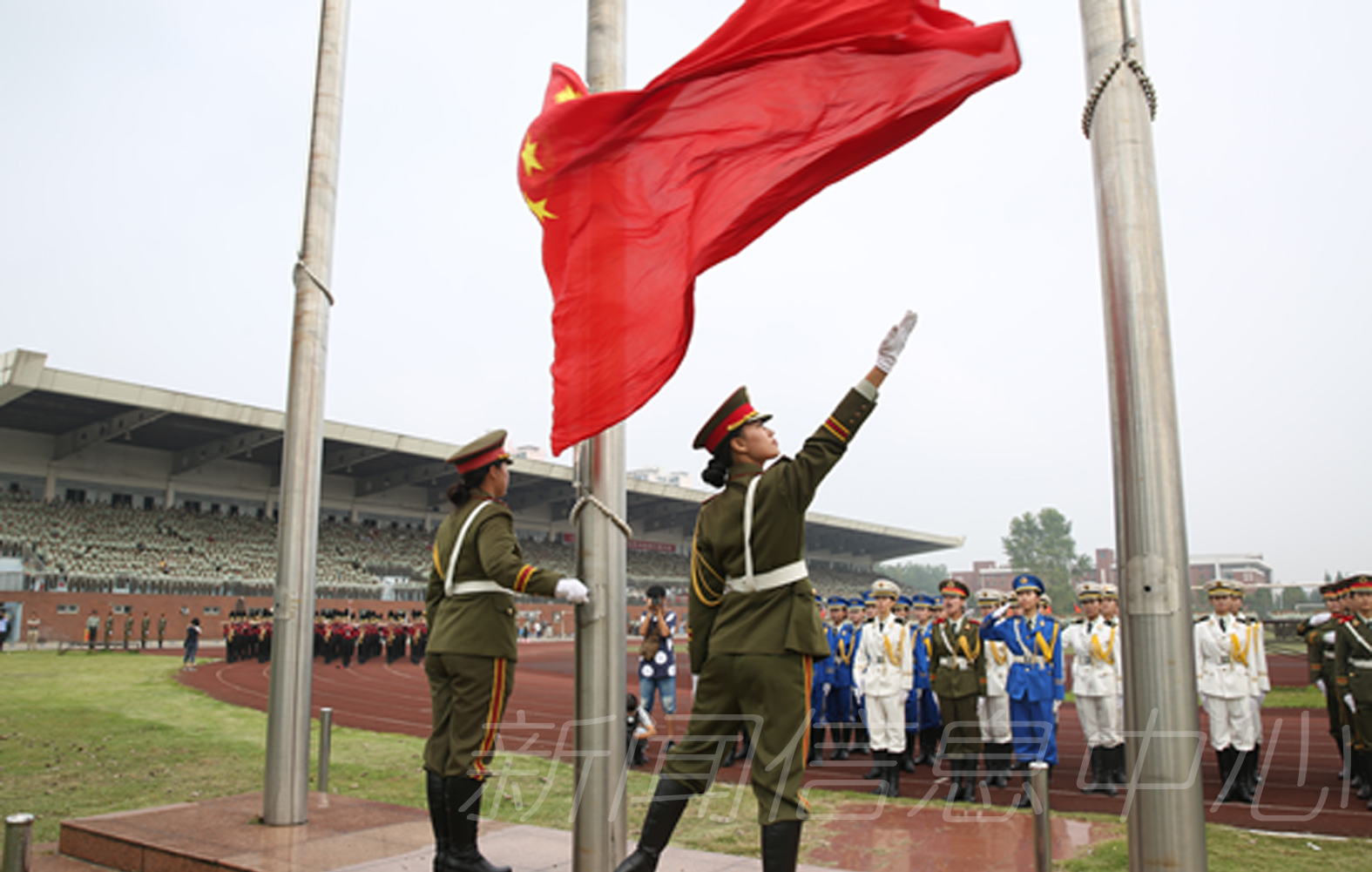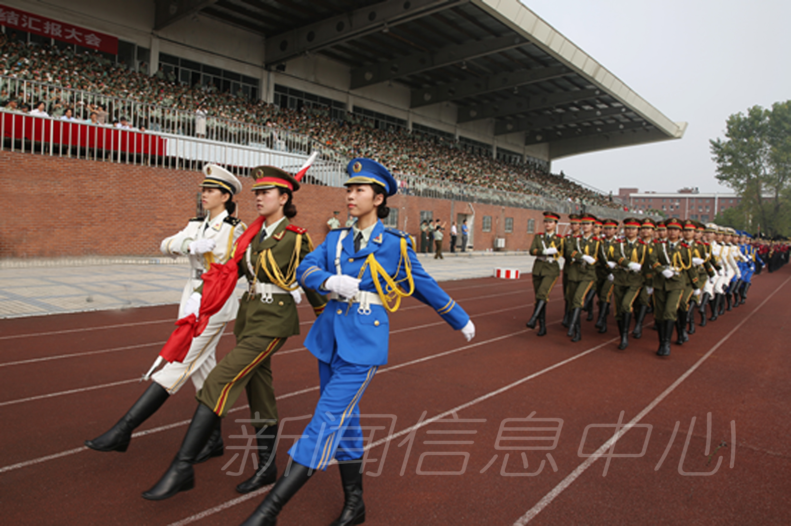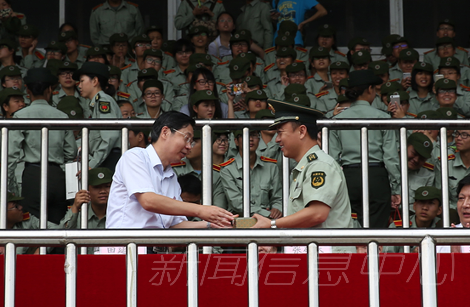 9月26日上午,我校新生军训总结汇报大会在瑶湖校区长胜体育场隆重举行,2015级全体新生用辛勤汗水交上了大学生活第一份令人满意的答卷。武警总队江西省第一支队参谋长张硕木,校党委书记田延光,副校长张艳国、项国雄,纪委书记贾俊芳,校长助理丁晖等出席大会并为军训受表彰先进集体和个人颁奖。相关职能部门负责人、名学院党委副书记、2015级新生辅导员和全体新生参加总结汇报大会。大会由项国雄主持。