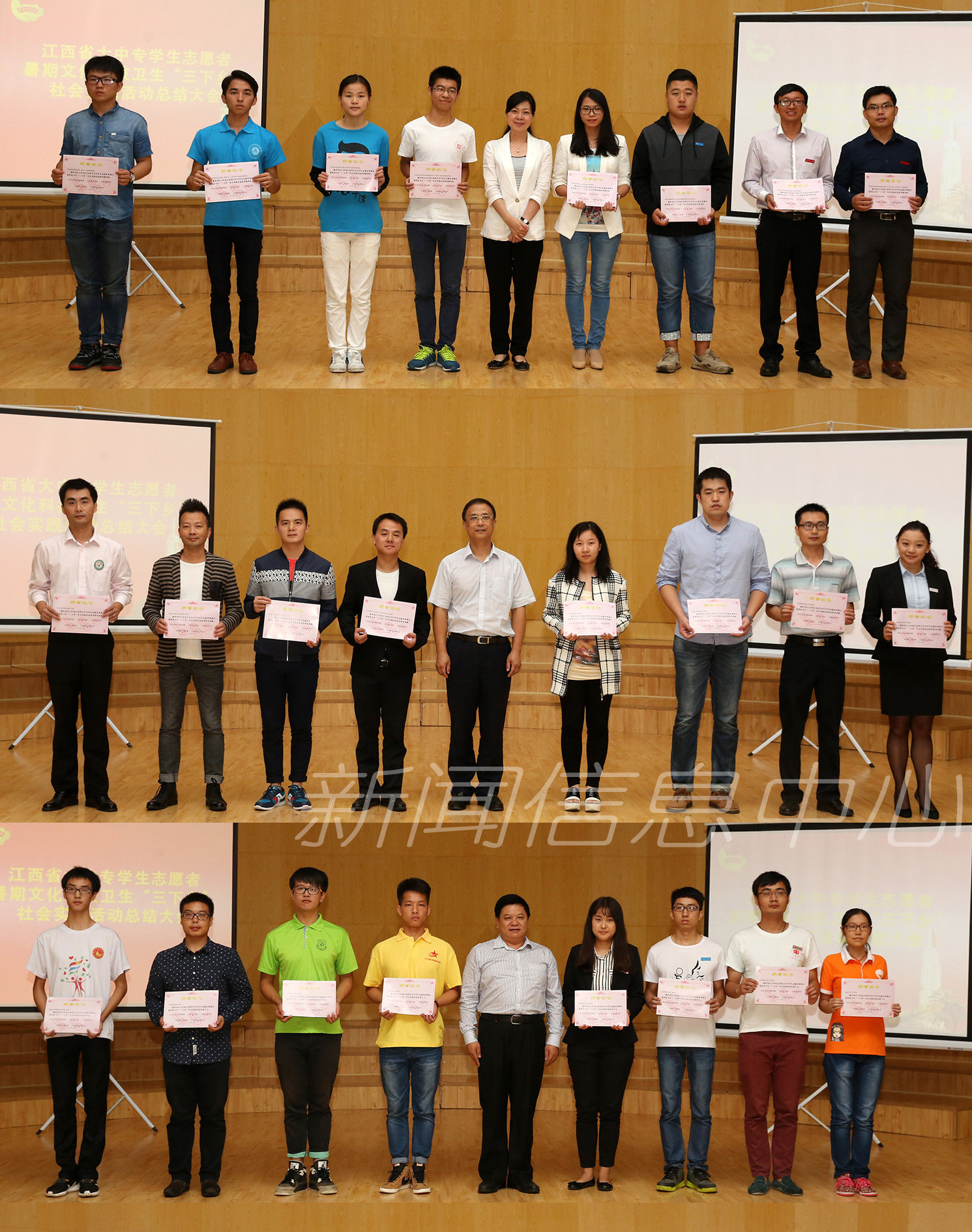 大会通过视频回顾了今年全省大中专学生志愿者暑期文化科技卫生“三下乡”社会实践活动的概况。先进个人、优秀指导教师和服务队代表先后作了发言,分享了参加实践的经验与收获。我校商学院“情系苏区筑梦仲夏”暑期社会实践队等四支服务队被评为全省优秀服务队,研究生院丁逸韬等五名学生被评为全省社会实践先进个人,学校获评为社会实践先进单位。
