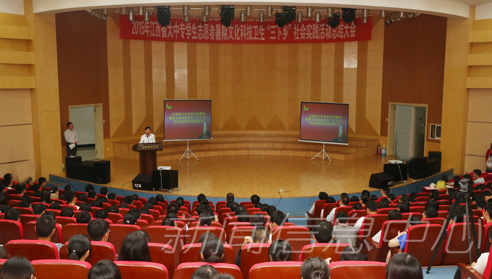 9月30日上午,2015年江西省大中专学生志愿者暑期文化科技卫生“三下乡”社会实践活动总结大会在我校音乐艺术广场音乐厅举行。省政协副主席郑小燕、团省委书记曾萍、省委宣传部副部长李绪先、省教育厅副巡视员曹连平等应邀出席大会并为获奖单位和先进个人颁奖。我校党委书记田延光到会祝贺并代表学校致辞。大会由团省委副书记伍复康主持。全省各高校代表共计300多人参加。