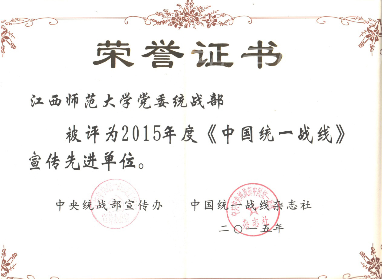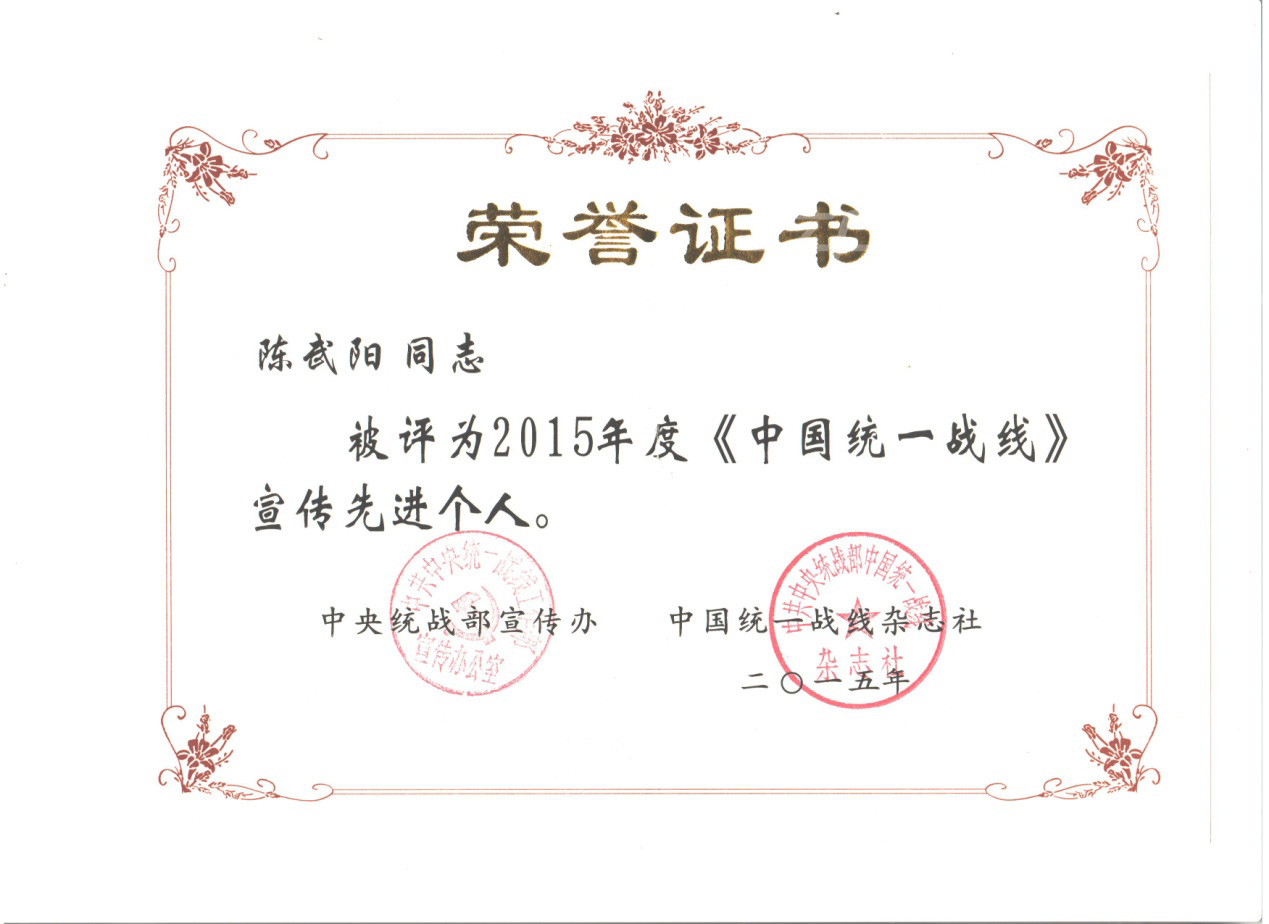 近日,我校党委统战部被中央统战部宣传办、中国统一战线杂志社授予“中国统一战线宣传先进单位”荣誉称号,这已是党委统战部连续十年获此殊荣。此外,党委统战部陈武阳同志也被评为“中国统一战线宣传先进个人”。(文/图 党委统战部)