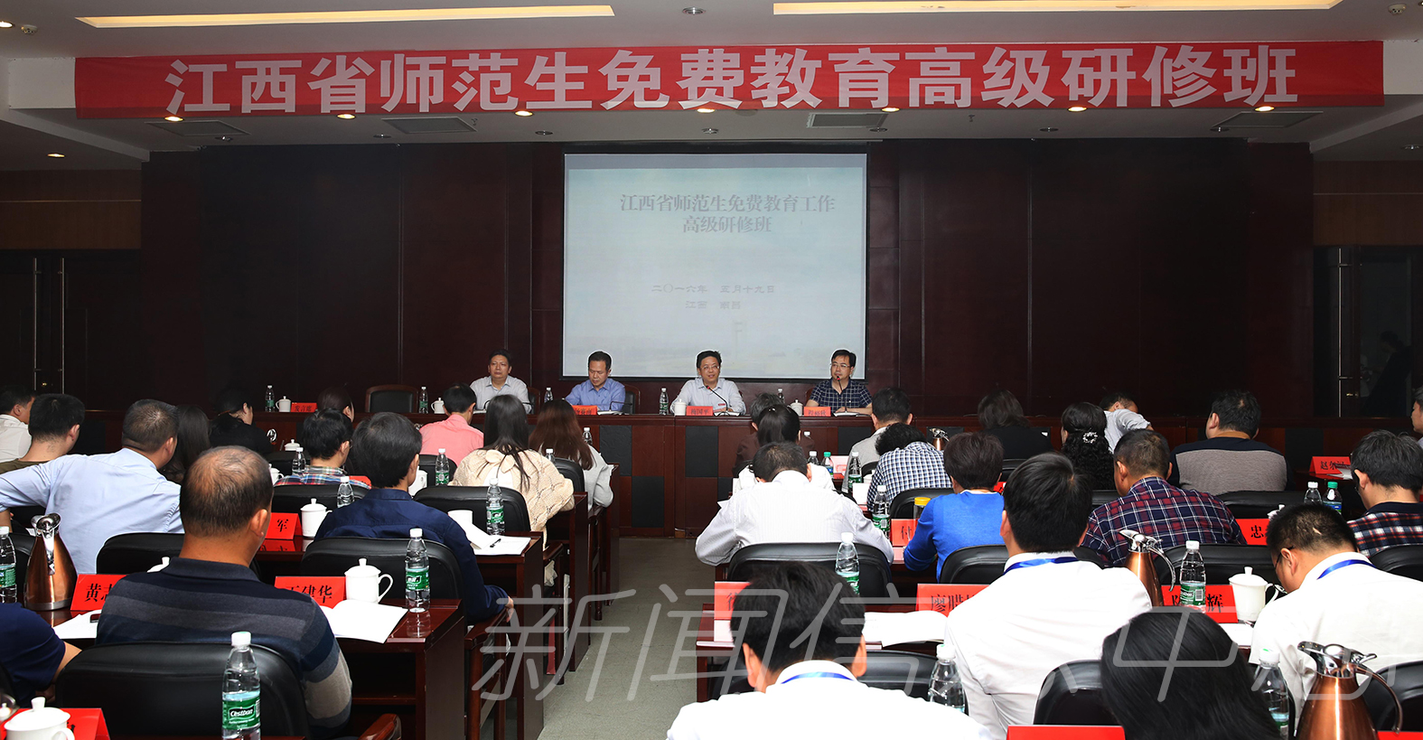 5月19日,江西省免费师范生教育工作高级研修班在我校举行。省委教育工委委员、省教育厅总督学汤赛南以及省教育厅相关处室负责人、全省各市县区100多个教育部门相关负责同志参加会议并观看了免费师范生首届教育成果展示。校党委书记田延光、校长梅国平,副校长项国雄等分别出席相关活动。