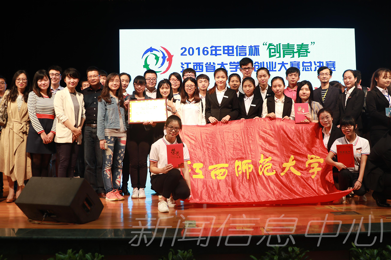 5月20日,2016年“创青春”江西省大学生创业大赛总决赛在江西科技学院落下帷幕。我校选送的11件作品全部获奖,其中软件学院选送的《基于智能微型皮肤测试仪的美丽加app》等5个项目荣获金奖,化学化工学院选送的《沃浦净水科技有限公司》等2个项目荣获银奖,商学院选送的《艺创客》等4个项目获铜奖,学校荣获优秀集体组织奖,实现了创业大赛省赛金奖类(创业计划类、创业实践类和公益创业类三大类别)全覆盖,金奖数量稳居全省高校之首,再次刷新我校在该项赛事省赛中的最好成绩。