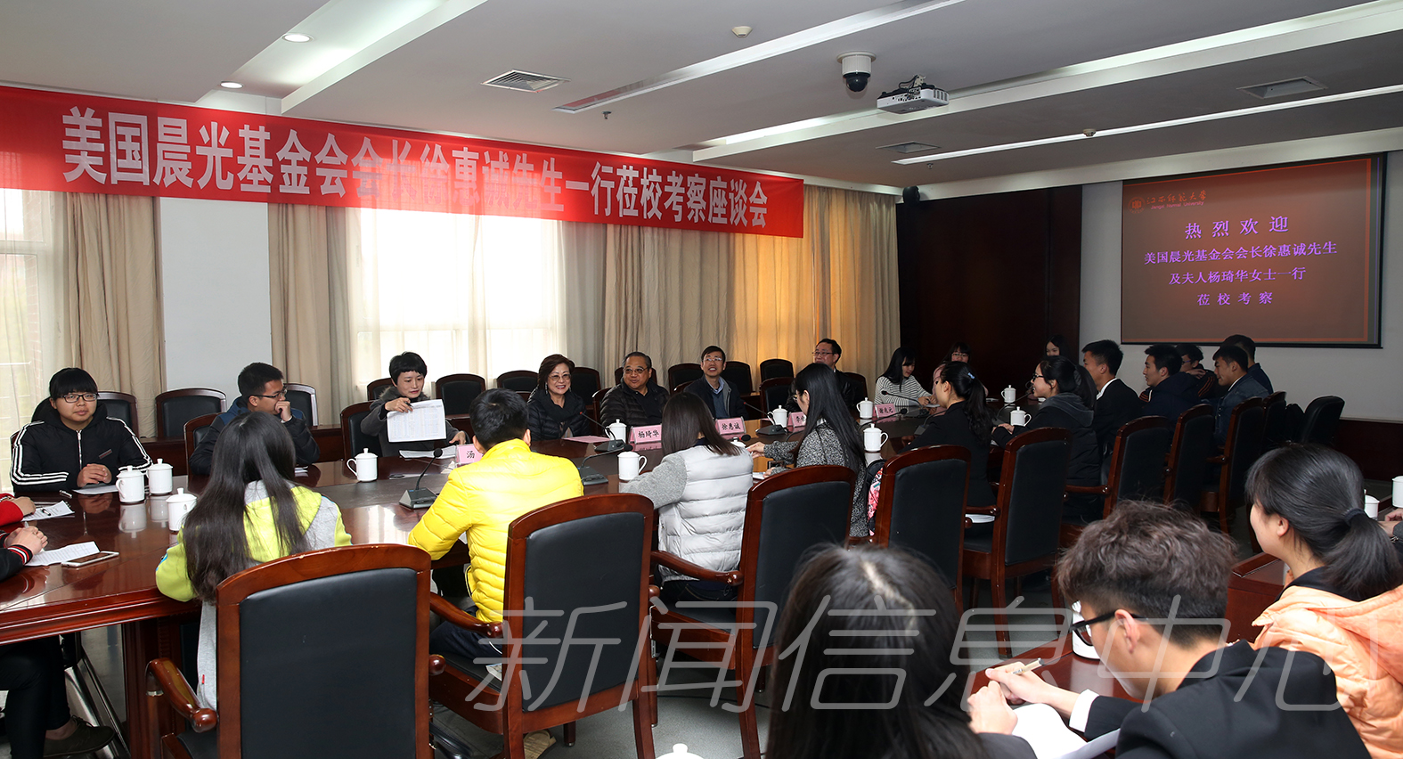 3月3日上午,美国晨光基金会会长徐惠诚先生偕夫人杨琦华女士等一行在省外事办有关部门负责人的陪同下来我校考察调研学生资助工作。副校长刘俊在学校相关部门负责同志陪同下在知行楼第一接待室会见了客人。