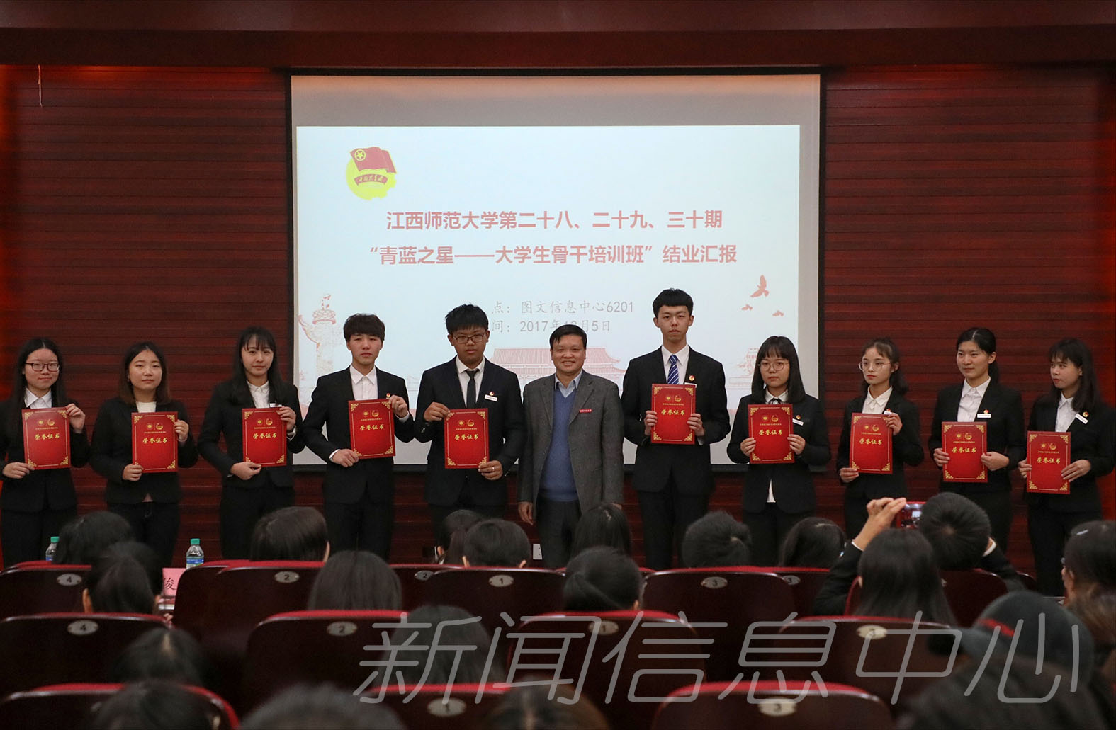 12月5日下午,我校第二十八、二十九、三十期“青蓝之星”大学生骨干培训班结业典礼在图文信息中心6201举行。副校长刘俊出席结业典礼为优秀学员颁奖,并对学生骨干和全校学生提出希望和要求。