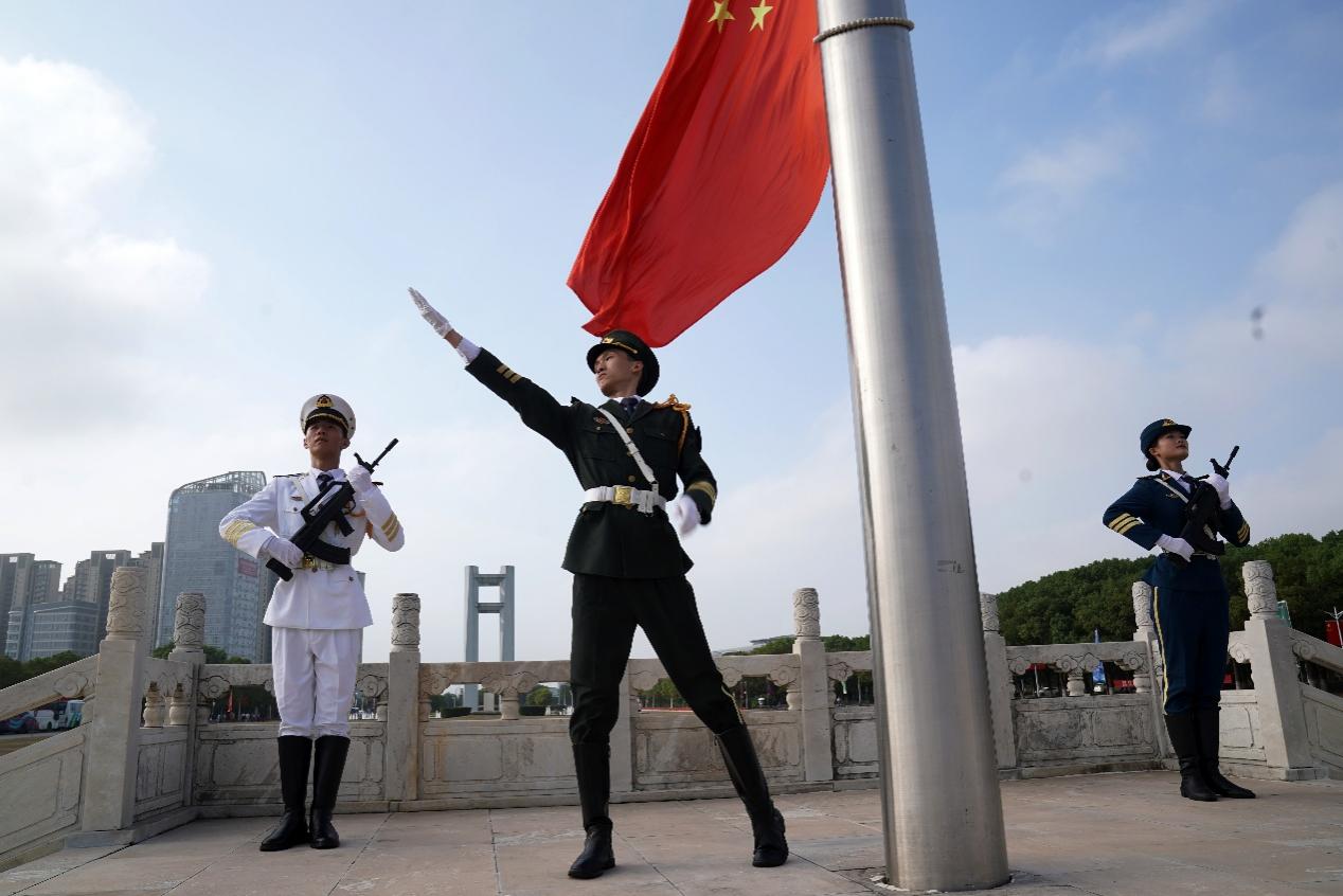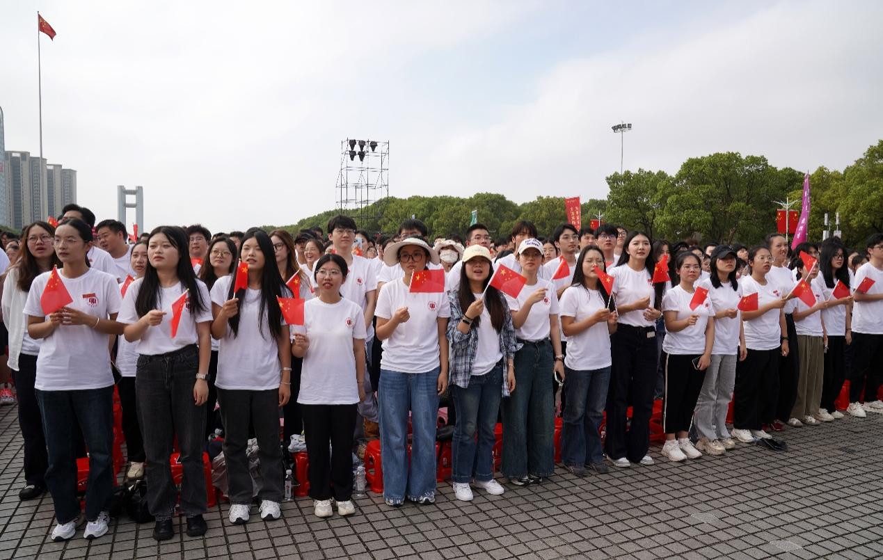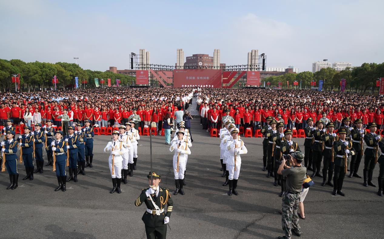 上午8时30分,在军乐团铿锵的乐声中,全体师生齐唱国歌,注视着五星红旗冉冉升起,典礼庄严启幕。