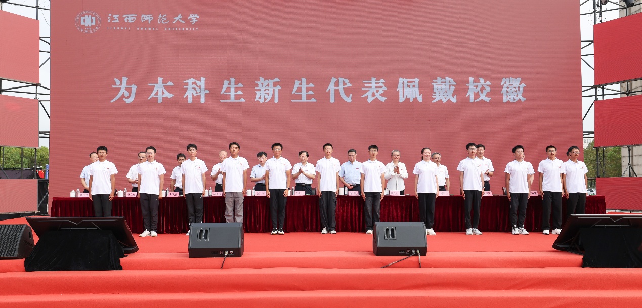 仪式上,校领导分别为2025级本科生、硕士研究生和博士研究生代表佩戴校徽,勉励同学们践行“静思笃行、持中秉正”的校训精神,在课堂中学真知,在实践中悟真理,在服务社会中显担当,让师大卓越基因代代相传,生生不息。