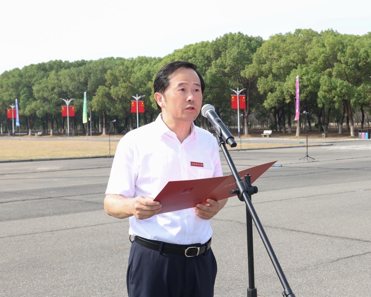 升旗礼毕,校党委书记朱小理讲话。他指出,站在新中国成立76周年和抗战胜利80周年的历史交汇点,青年学子要胸怀“国之大者”,立“强国有我”之志;要勤学善思笃行,成可堪大用之才;要矢志艰苦奋斗,担民族复兴之任。他强调,全体师大人要以“赶考”的心态、“奋进”的姿态,努力在教育强国、教育强省建设征程中贡献师大力量,彰显师大担当。