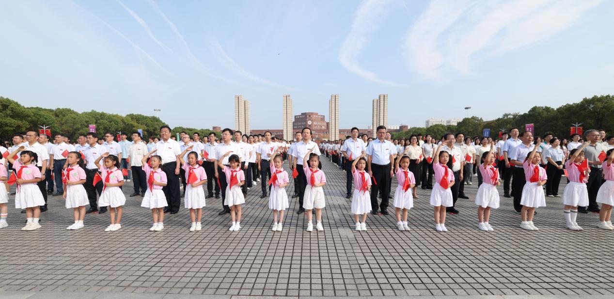 校领导朱小理、陈芬儿、汪洋、周利生、刘利民、董圣鸿、钟业喜,校党委常委郭亮亮、王一喜出席,学校老领导代表邹道文、徐耀耀、丁晖,党政管理部门、业务单位和各学院主要负责人,以及本科生、研究生代表,附属中学、附属小学师生代表等参加升国旗仪式,共同见证这一庄严时刻。仪式由校党委副书记汪洋主持。