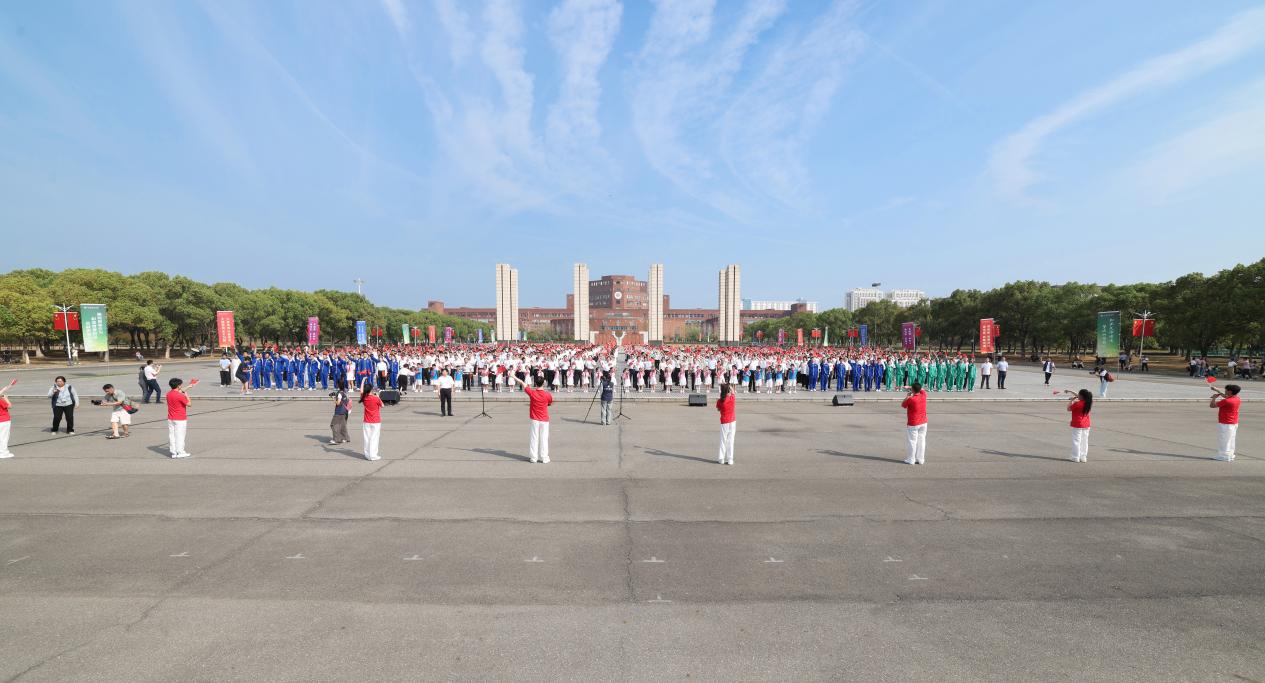 最后,全场师生齐声高唱《我和我的祖国》,悠扬深情的旋律在广场上空回荡,共同祝愿伟大祖国繁荣昌盛、国泰民安。