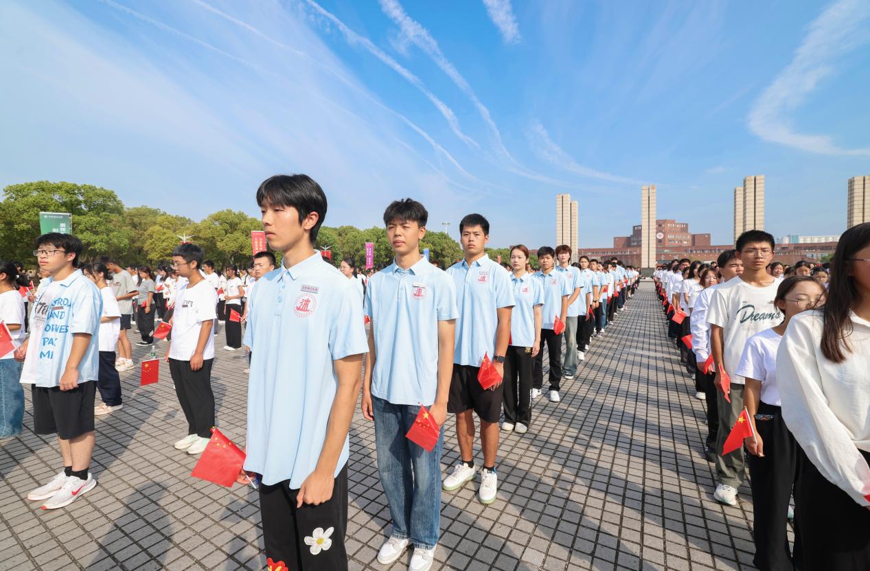 红旗猎猎映晨光,爱国情怀满校园。10月1日上午,为庆祝中华人民共和国成立76周年,我校在瑶湖校区正大广场举行升国旗仪式。